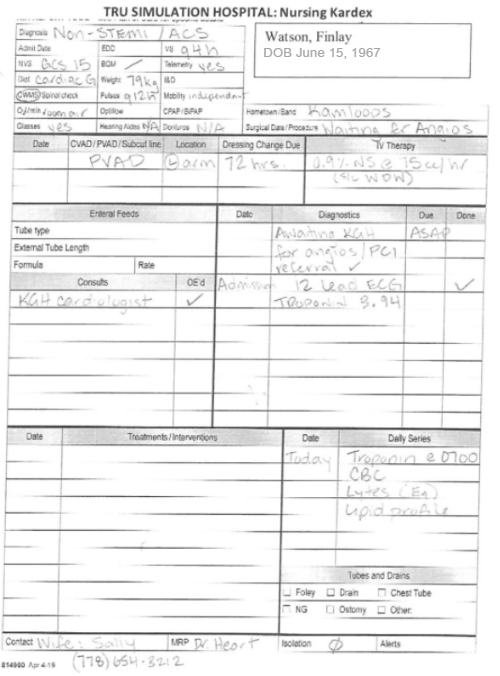 NOTES: | Slept poorly. No chest pain over night. Slept poorly d/t admission @0200, had zopiclone @ HS. | ||||||||
